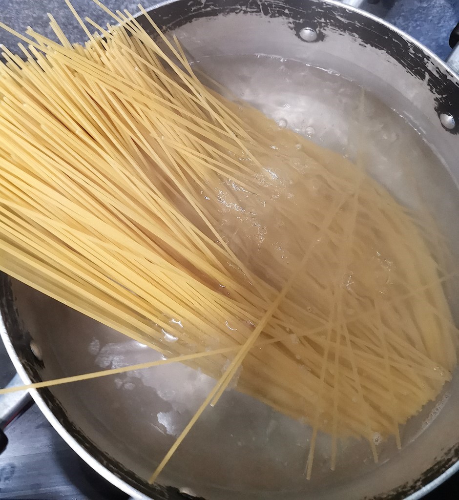Mettez un grand volume d’eau à bouillir avec un peu de gros sel pour vos spaghettis. Une fois que l’eau bout à grandes bulles, rajoutez les spaghettis et laissez cuire jusqu’à avoir la cuisson qui vous convienne.