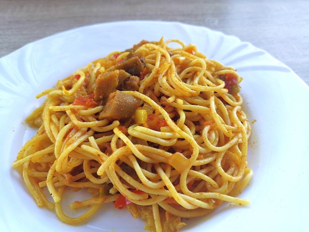 Egouttez vos spaghettis cuits et remettez-les dans la casserole. Une fois vos légumes prêts, versez-les sur les spaghettis et remuez un moment le tout à feu doux pour que les pâtes s’imprègnent bien de la sauce. Vous pouvez rajoutez un filet d’huile d’olive pour les bons lipides, c’est encore meilleur!